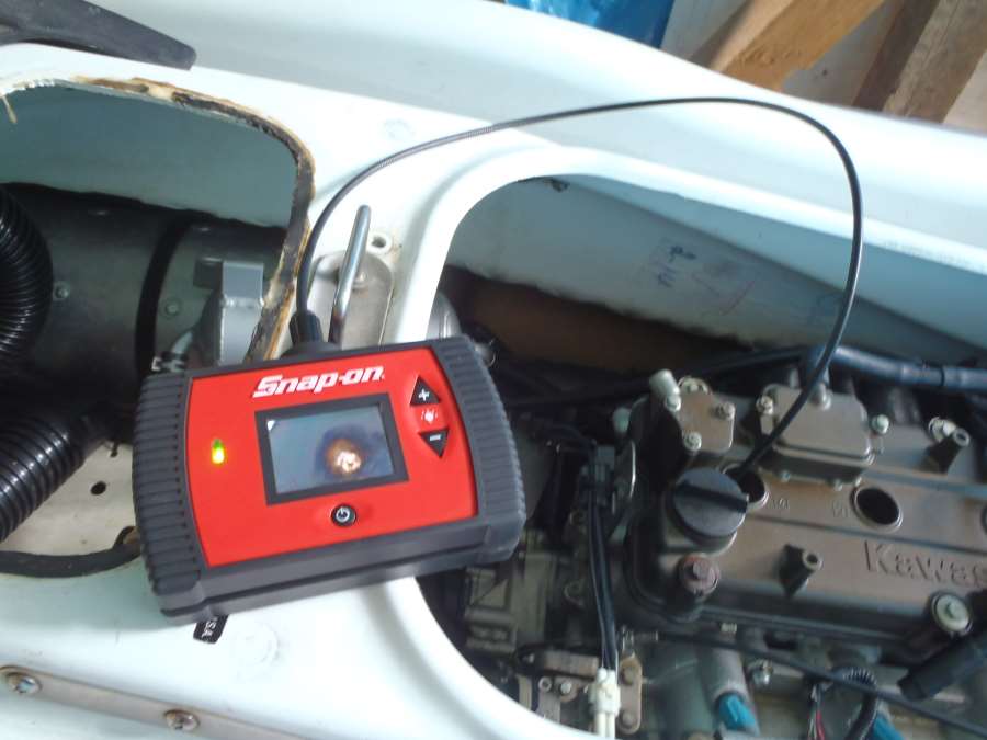 最後にカメラでピストンの上に遺物が落ちていないかカメラで
