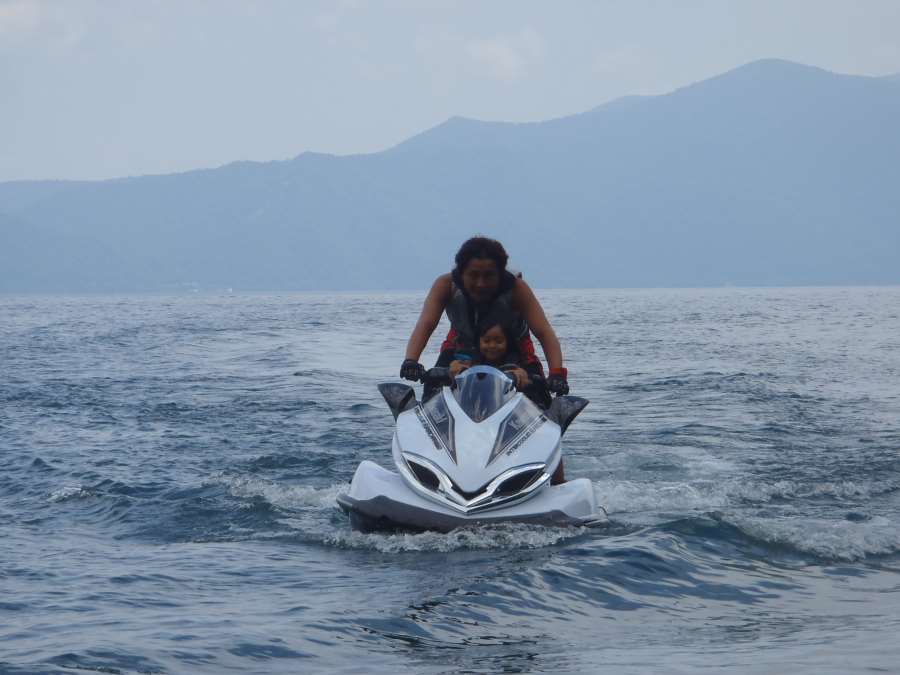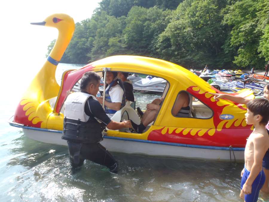 *黒石に有る沢モータースさん主催の、湖を使った遊びをする
