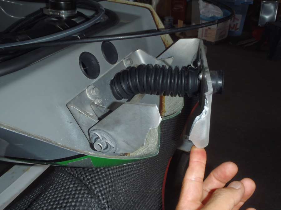 (Ⅹ-2のフードヒンジ部分の下側のステン素材の破損)
