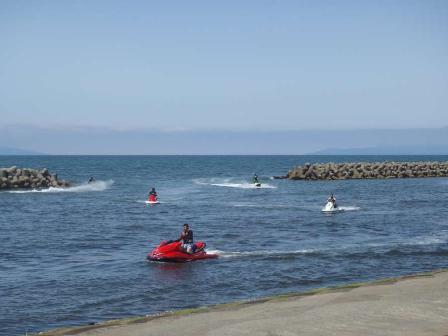 会場で、ジェットスキーをもって行きイベントに参加