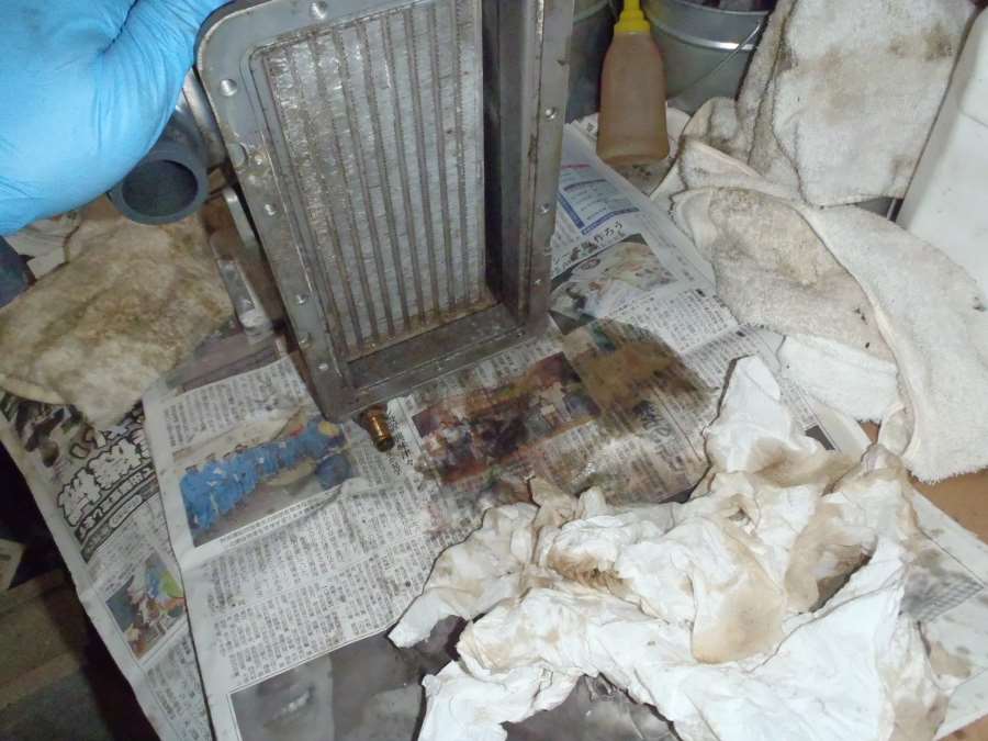 *水を回して暖機してから、水平にしてオイル抜きーーと