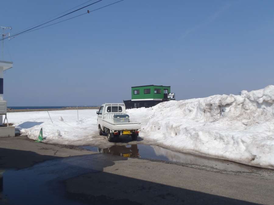 *店の前の駐車場部分の雪が全然無くなりません・・・
