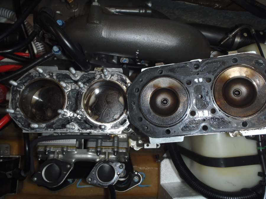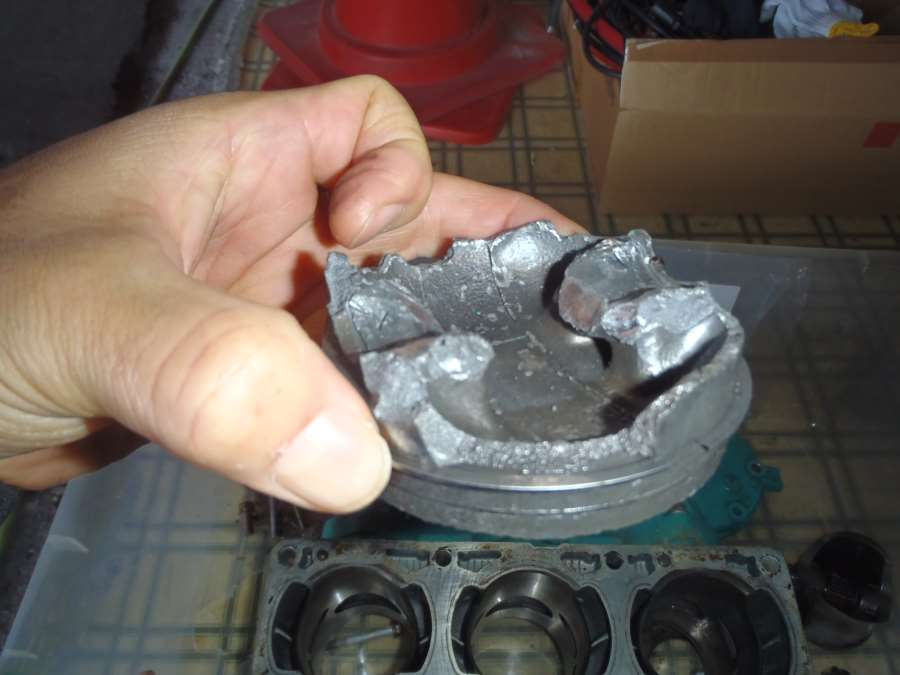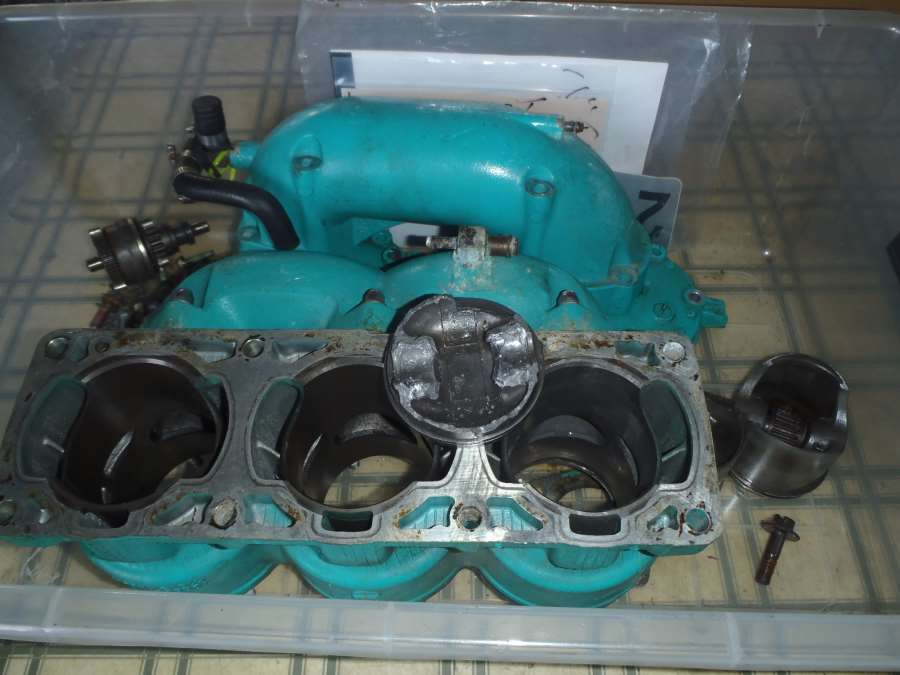 2ストロークのエンジンなのですが、4スト用のハイコンプ系のピストンと 勘違いするくらい、3分の1くらいの大きさと、粉々になってます。 *カワサキ1100STXのエンジン