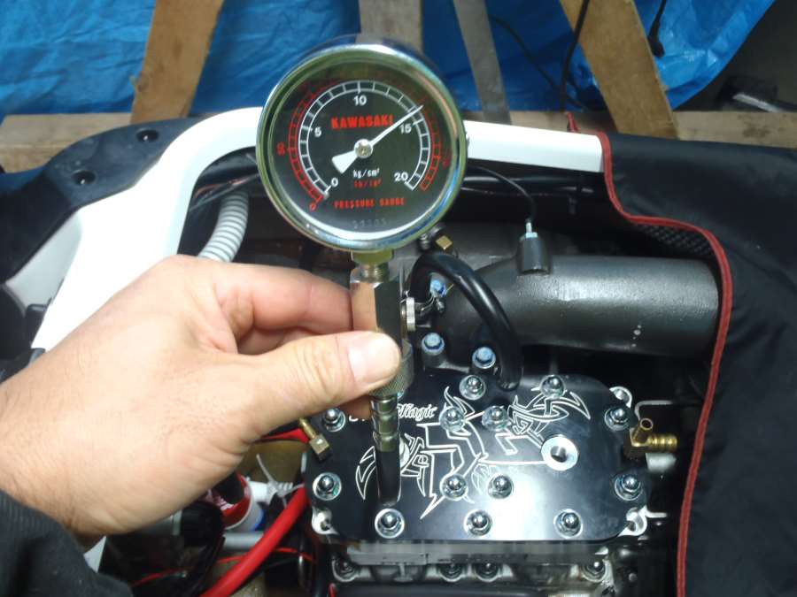 *カワサキ純正の計器では 左右とも14,2キロになりました。(ドーム容量26cc) *ちなみに計器のメーカーによっては、若干計測比が違ったりします。
