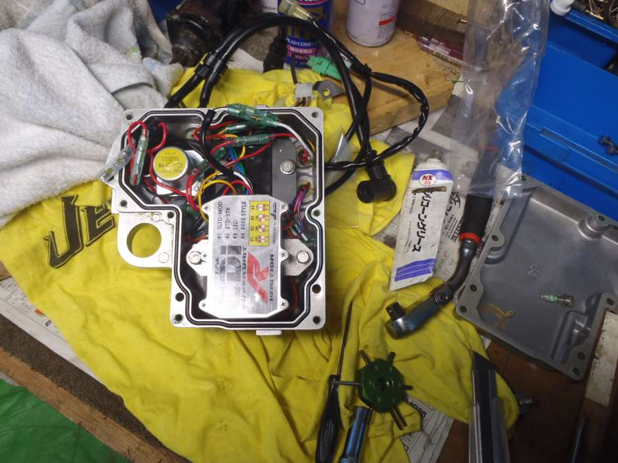 *取り付けの時には、エンジンと電装BOXの間に、アースになる 線を一本取り付けを忘れないように。 (設定は3で、24,5度スタート)
