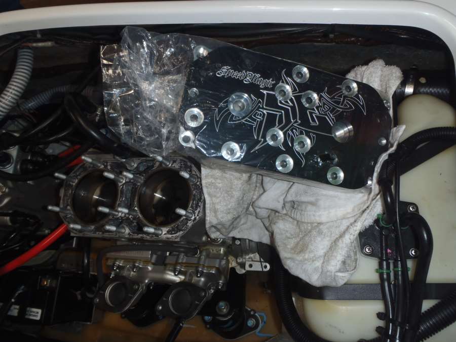 今日は800SX-Rのビレットタイプのヘッド取り付けと、 CDI-Rの電装系を取り付け(予定と) キャブレーターのダイアフラム等を交換の為、キャブを取り外し。