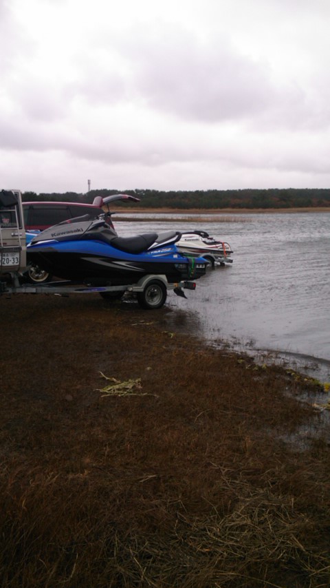 久しぶりに店を出てシーズンオフ前のジェットの水洗いの為、お客さんと二人で木造にある平たき沼に行って来ました。しかも天気も悪く風も強く最悪な状況の中ジェットに乗って来ました。