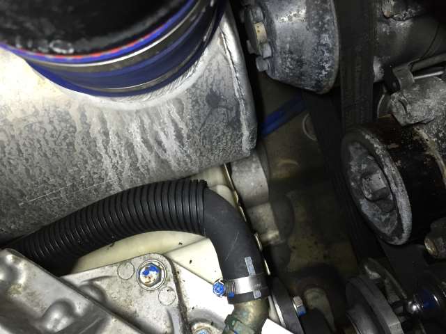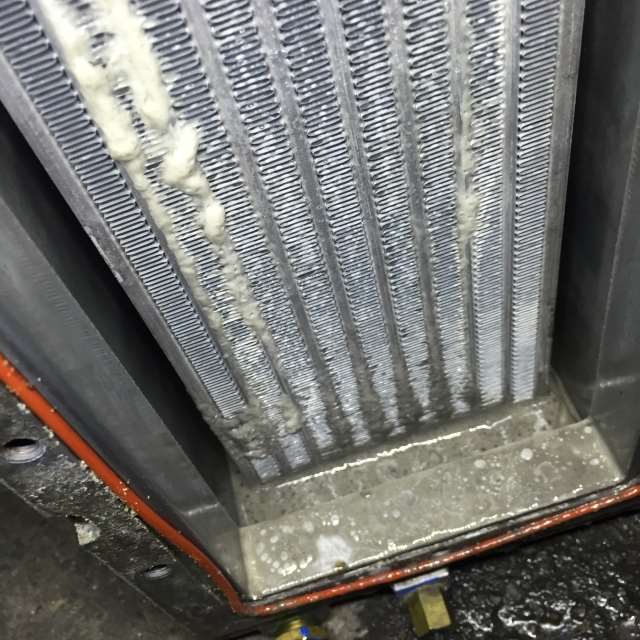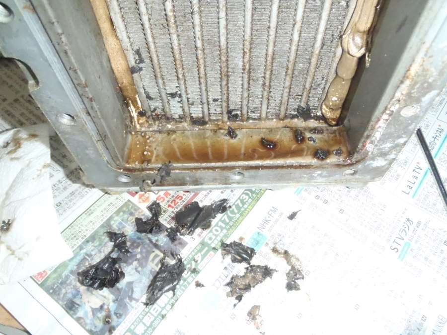インタークーラーない点検 水、オイル、この黒い物体は・・・S/Cのフィンコーティーング?