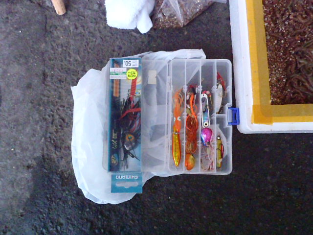 今日はこんな仕掛けとイソメを用意して、雨の中鯛つりに出かけてきました。