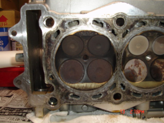 エンジンを降ろして修理する事に。 何故か1番の燃焼室が錆びています???