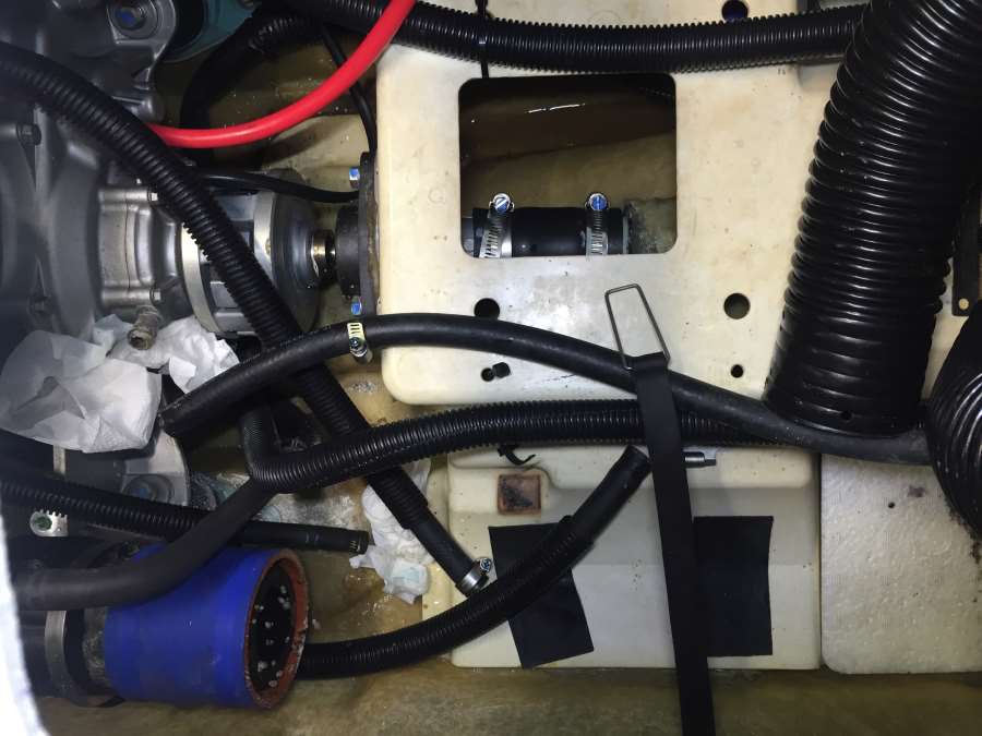 トラブル個所発見の為、水周りのホースを一本、一本外しながら