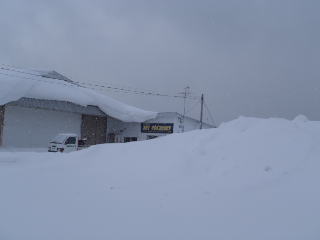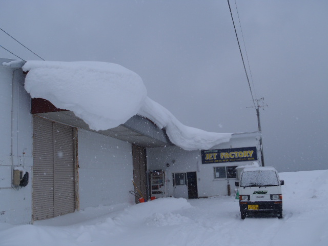 当店のシャッターの上についている屋根に雪が積もり かなりやばい事に・・・・
