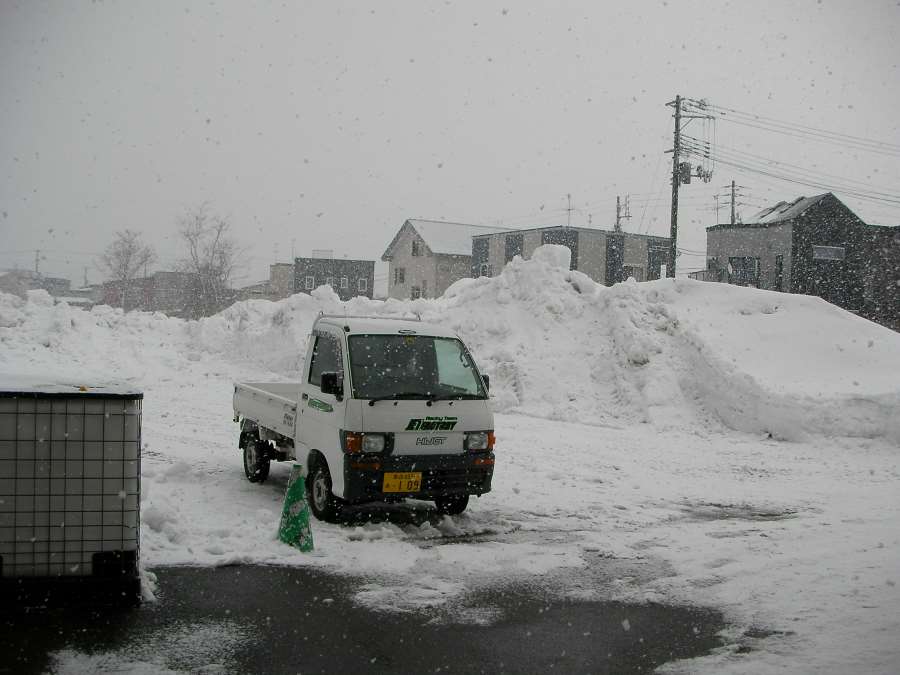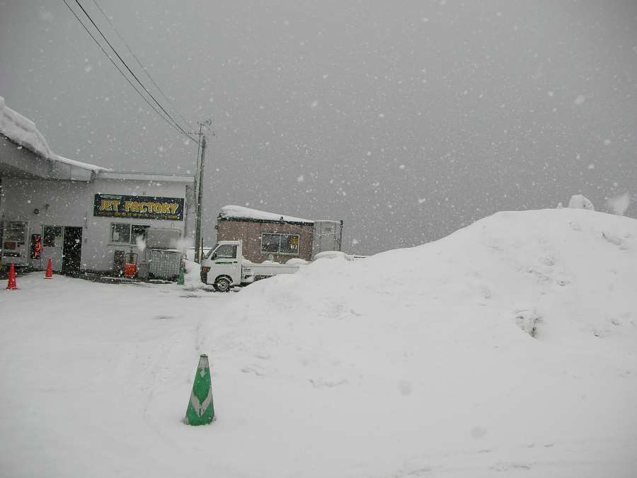 店の横に寄せた雪もかなりの物で、店の屋根の高さまで来る くらいの高さになっています。