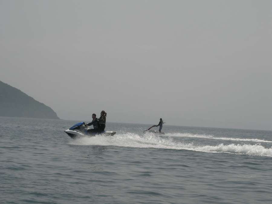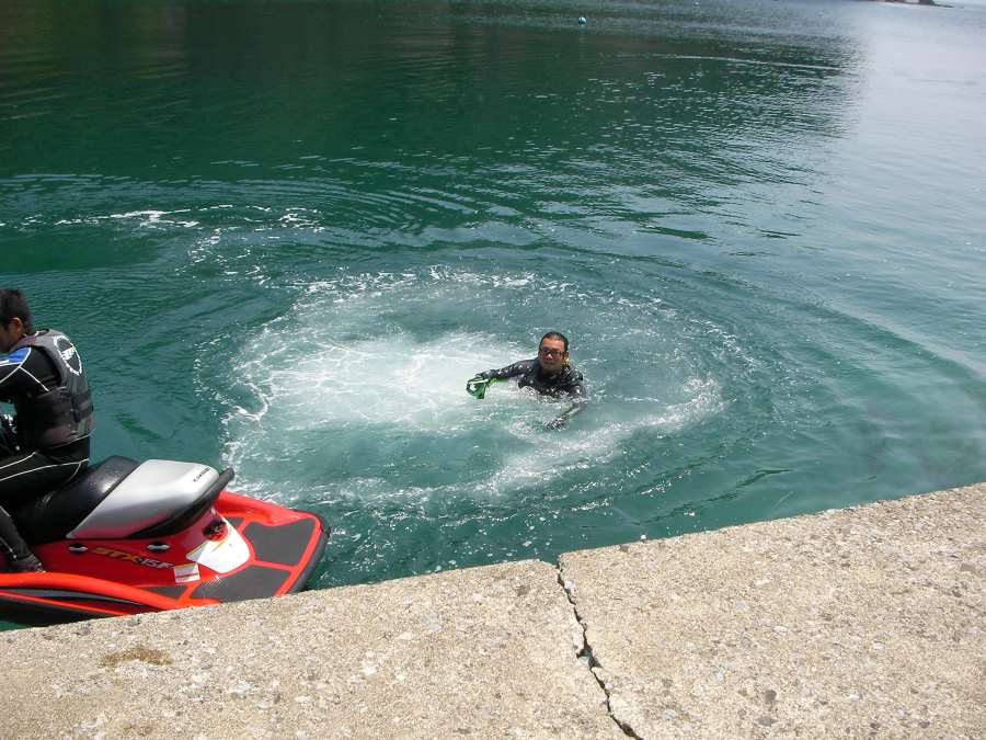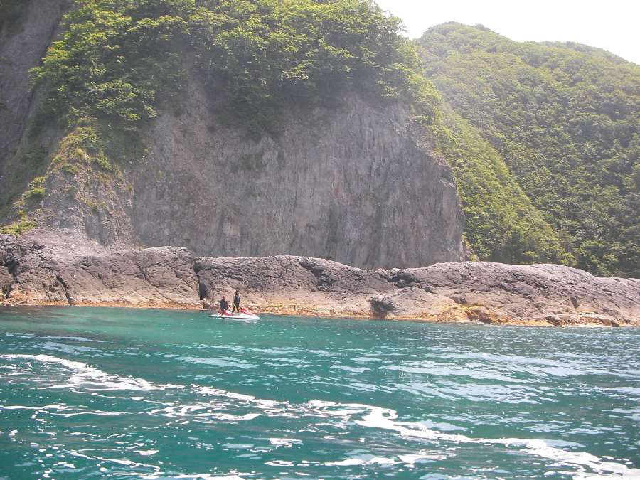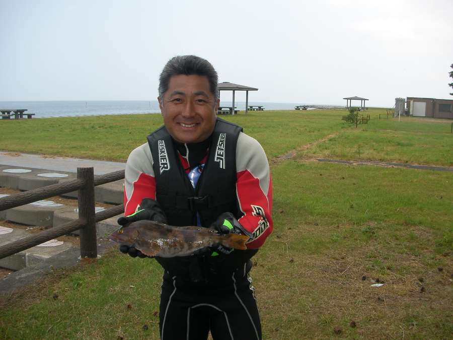 20分くらい遊んでから、お昼を過ぎたので平舘に帰ることに・・。 今回は始めての場所でのツーリングだったので、次回はたい島方面へ行く事を約束して戻り、みんなで昼食! 昼食後はJETで釣りをすることに・・・! 本日の大物賞は辻さんがでかいアブラメを2匹ゲット!