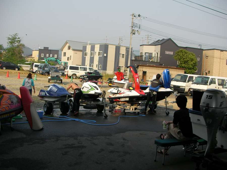 *乗った後の水洗いも大混雑です。 ◇今日は当店より新艇を購入の小山さんの初乗り(進水式)でした。